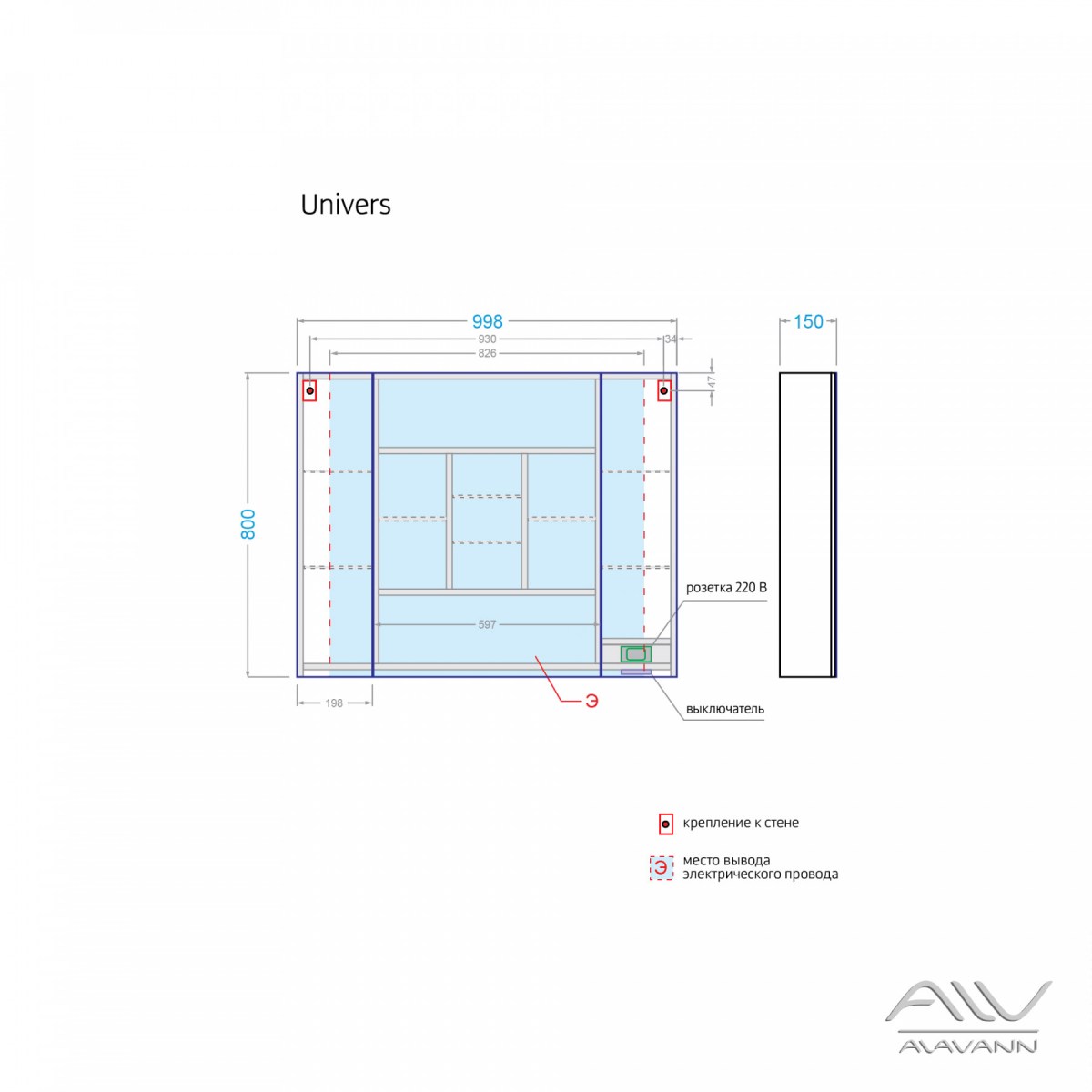 Зеркальный шкаф Alavann «Univers 100» своей формой и компактными размерами идеально подойдет в вашу ванную комнату, подсветка приобретается отдельно. Влагостойкое покрытие сохранит шкаф от воздействия влаги.