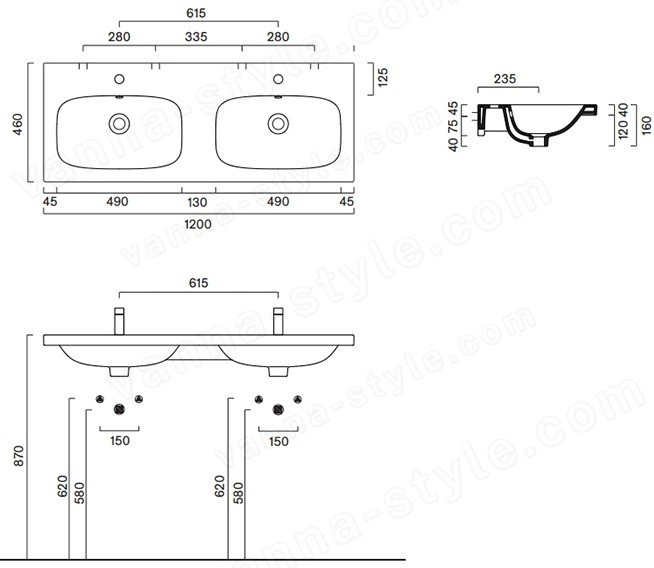 Раковина двойная Catalano Alvea 0621222001 120x46, белая