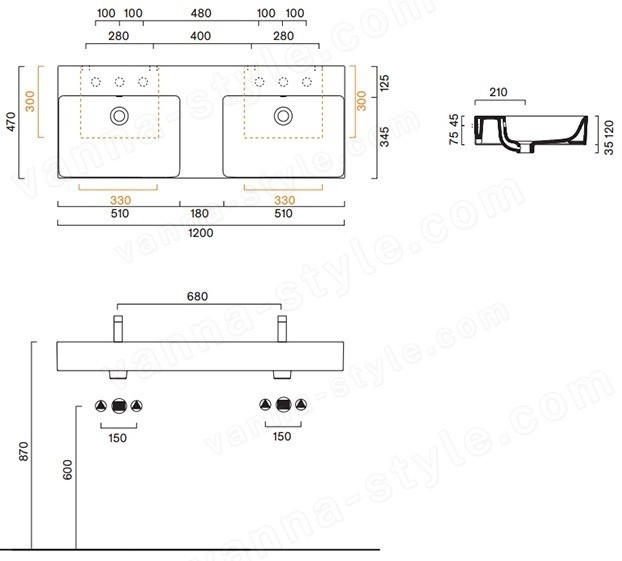 Раковина двойная Catalano Premium 0221220001 120x47, белая