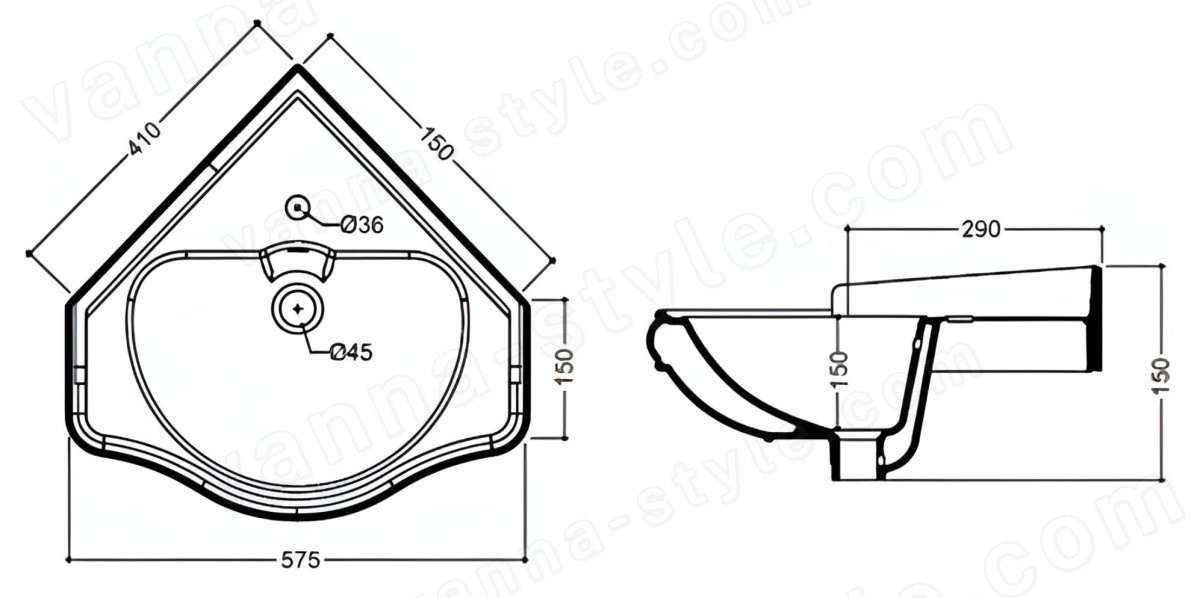 | Тип раковины | Подвесной |