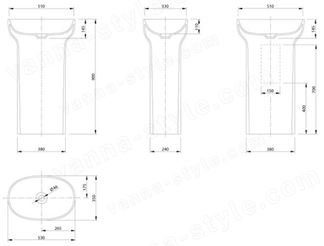 Напольная раковина Knife Prime 0600-012-01WA 53x35, белая матовая