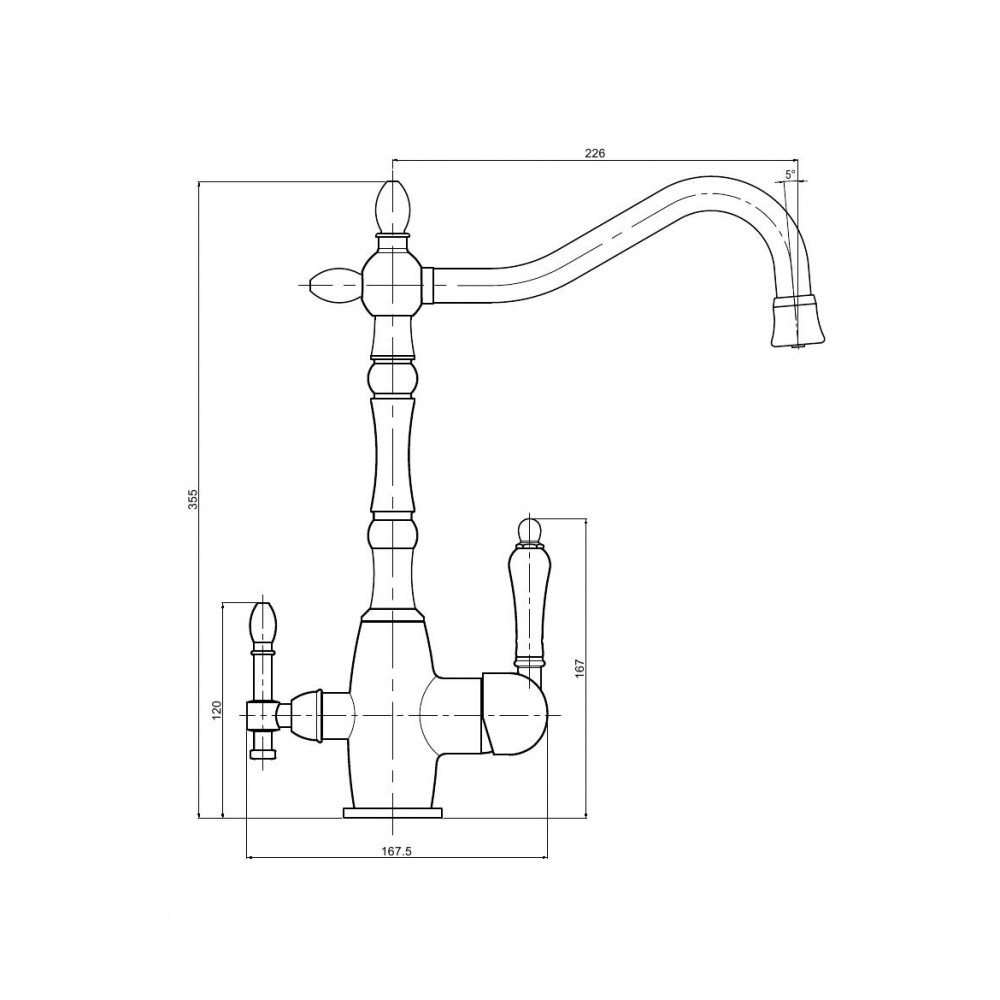 Смеситель для кухни Milacio «Castellon Ceramic MC.515.BR» выполнен в классическом стиле с одноруким управлением. В комплект смесителя Milacio «Castellon Ceramic MC.515.BR» входит все необходимое для его установки.