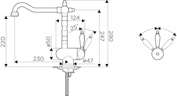 Смеситель Omoikiri Kyoto-A OKY-AB-35 имеет высоту излива 22 см, что обеспечивает достаточное пространство для удобной мойки посуды и приготовления пищи. Длина излива составляет 21,5 см, что обеспечивает оптимальный радиус действия воды. Несмотря на отсутствие выдвижного излива, этот смеситель оправдывает ожидания пользователей своей эргономичностью и удобством использования.