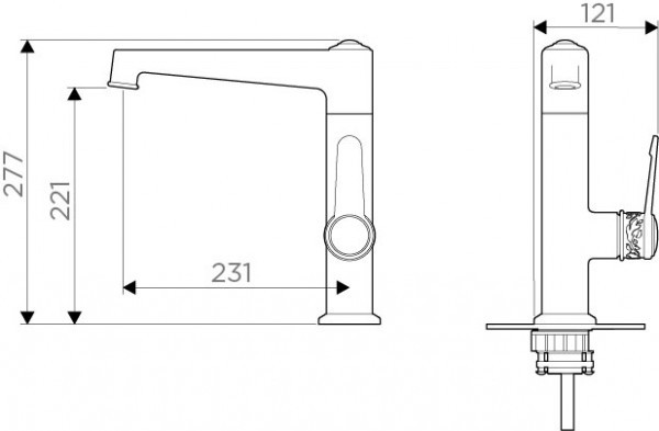 Этот смеситель для кухни Omoikiri Yamagata-G OYAM-G-35 не имеет выдвижного излива, но его преимущество заключается в простоте и надежности однорычажного управления. С легкостью регулируйте поток воды и температуру с помощью удобного рычага.