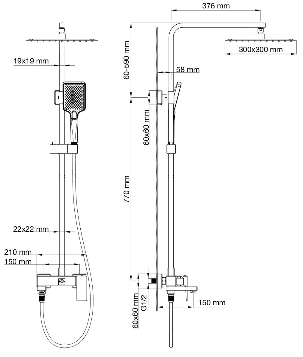 Душевая система Wonzon&Woghand Cube 2.0 WW-88047068-CR с изливом, хром