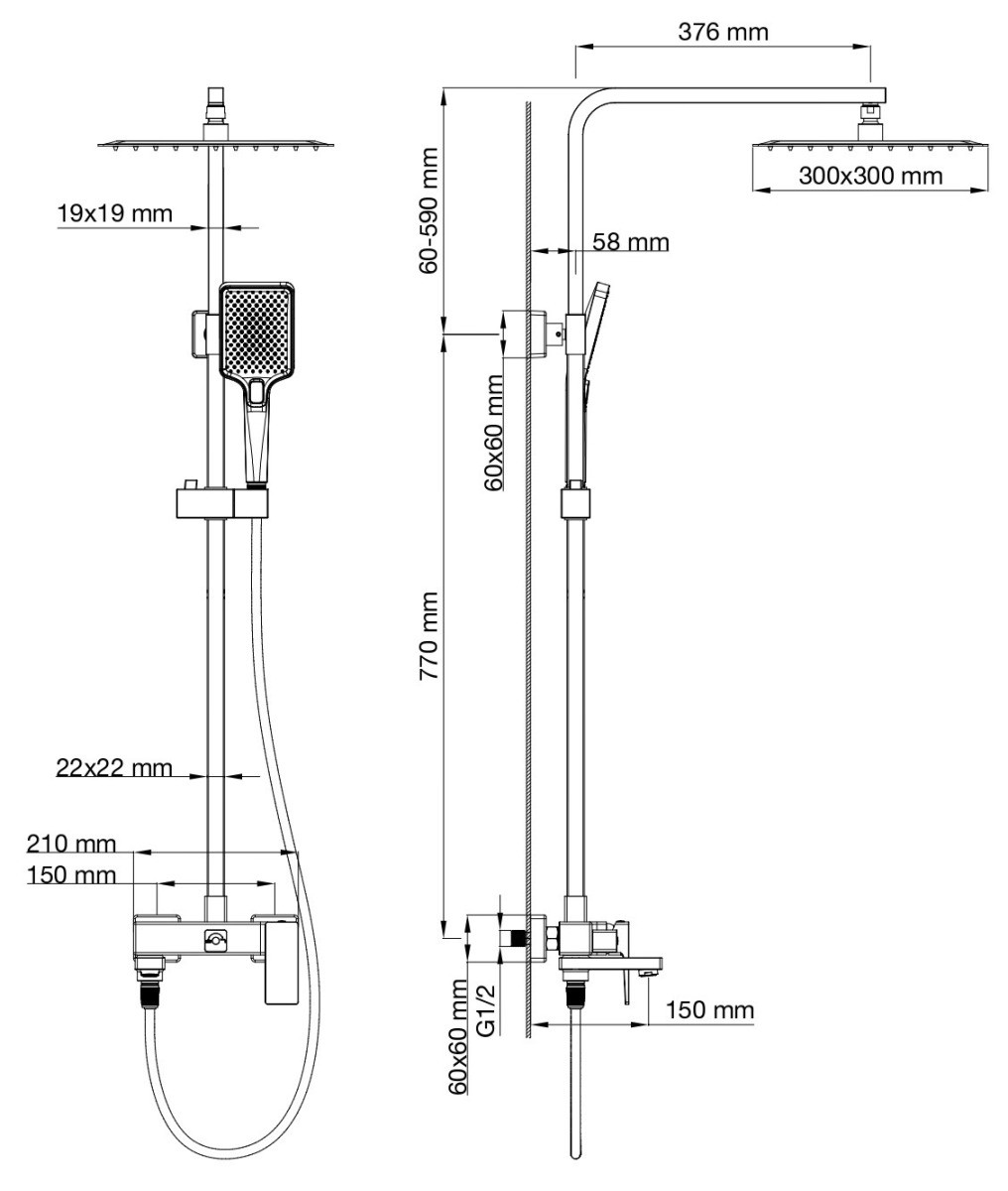 Душевая система Wonzon&Woghand Cube 2.0 WW-88047068-MB с изливом, черная матовая