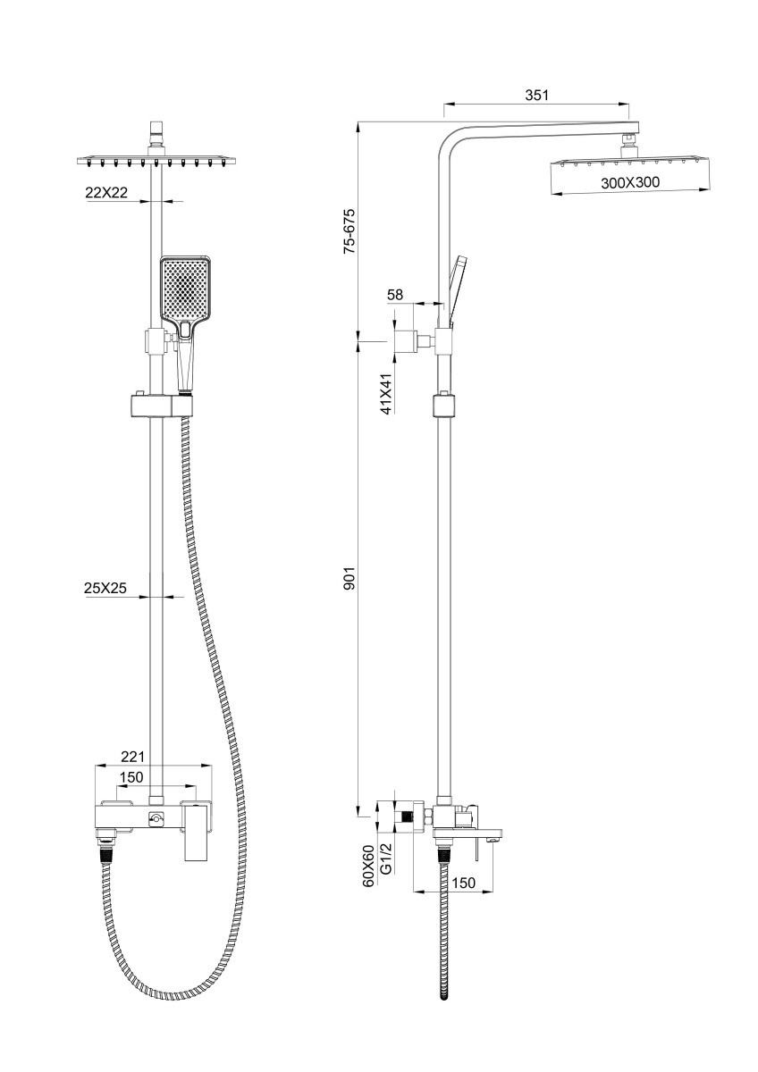 Душевая система Wonzon&Woghand Cube WW-88739016-MB с изливом, черная матовая