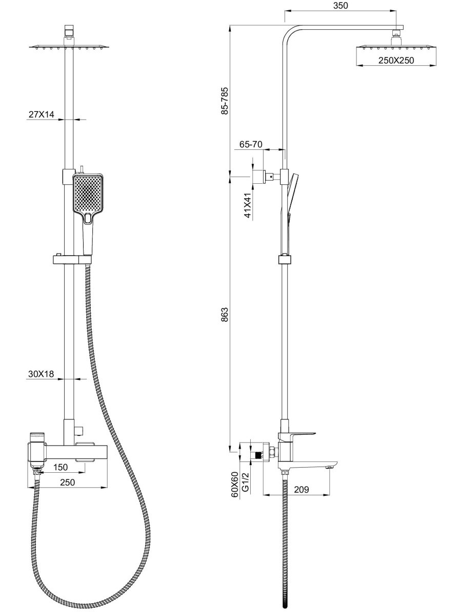 | Форма верхнего душа | Квадратная |