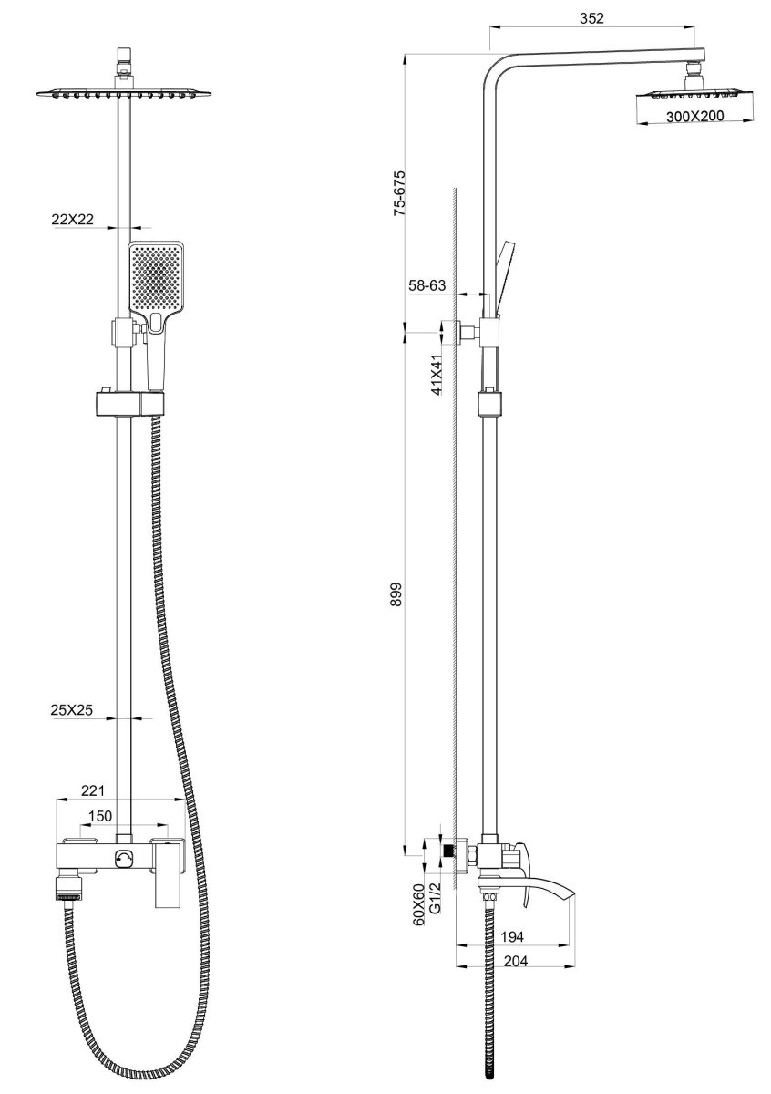 Душевая система Wonzon&Woghand Fit WW-88739009-BG с изливом, брашированное золото