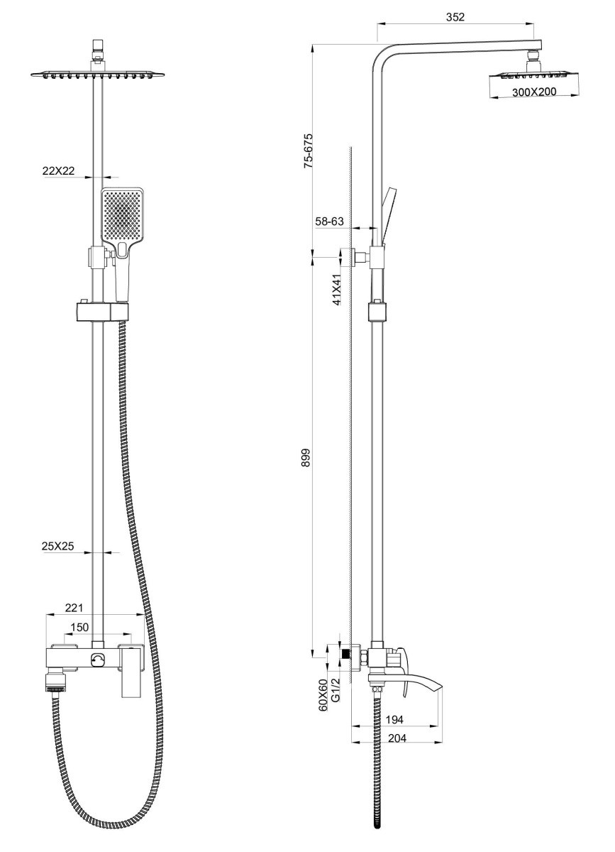 Душевая система Wonzon&Woghand Fit WW-88739009-CR с изливом, хром