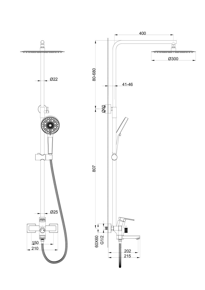 | Длина верхнего душа | 30 см |