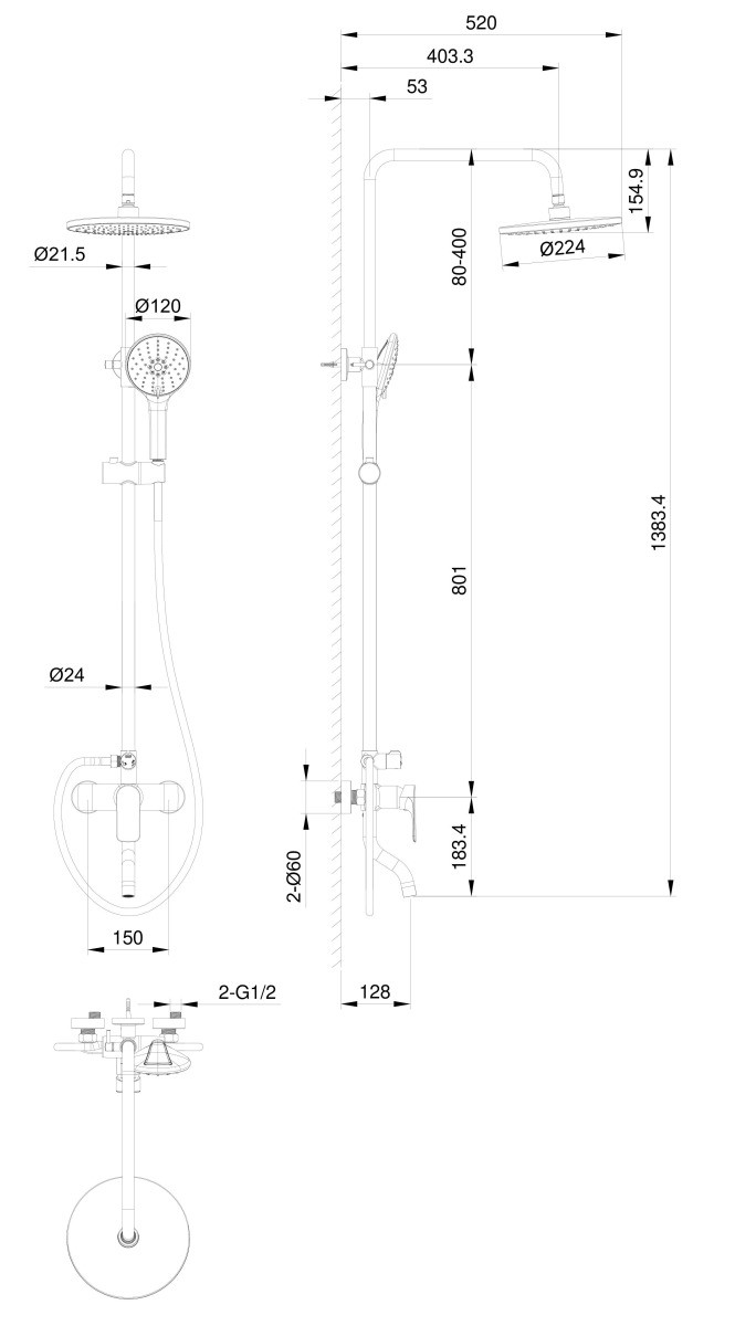 Душевая система Wonzon&Woghand Line WW-AE3354-MW с изливом, белая матовая