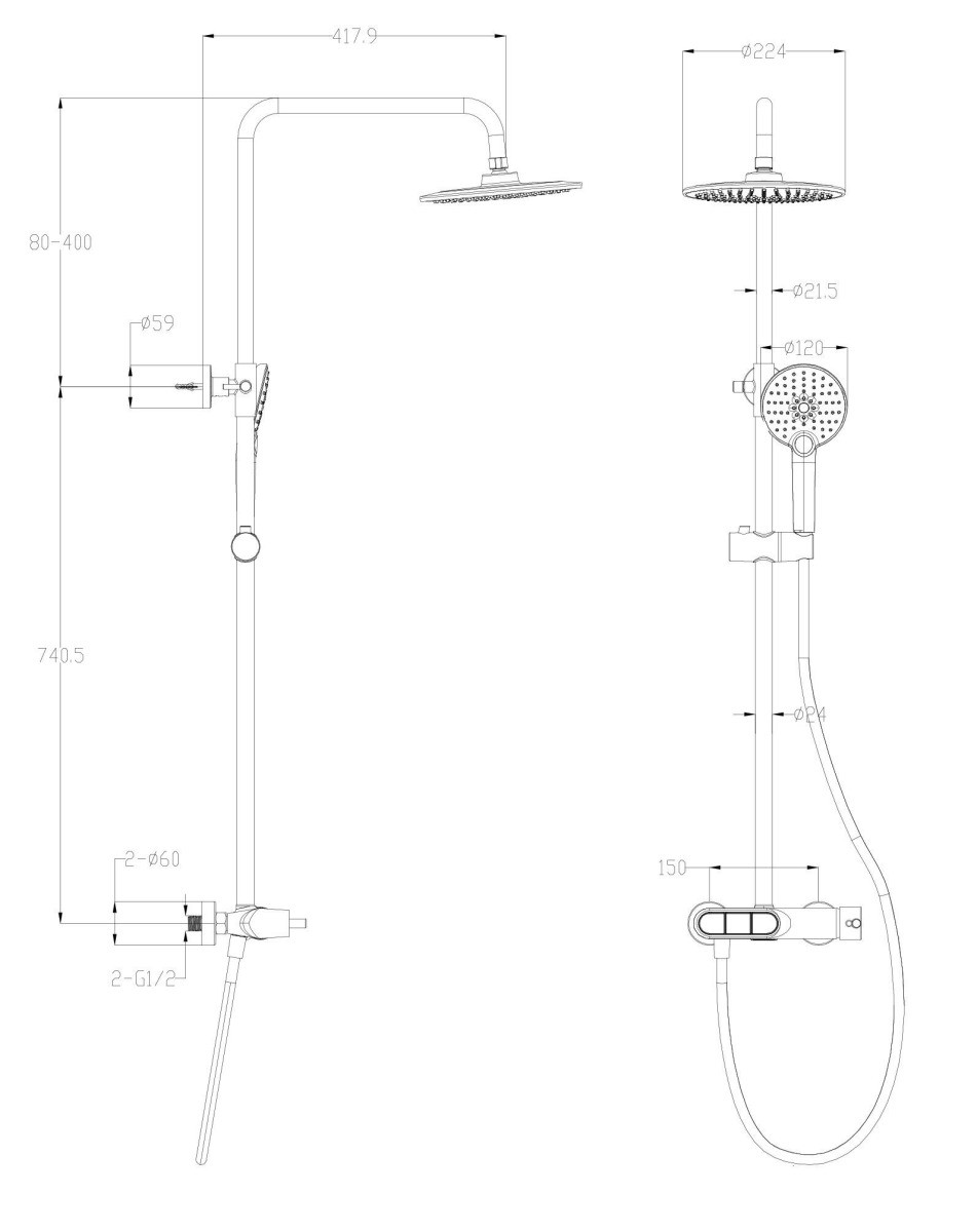 | Длина верхнего душа | 22.4 см |