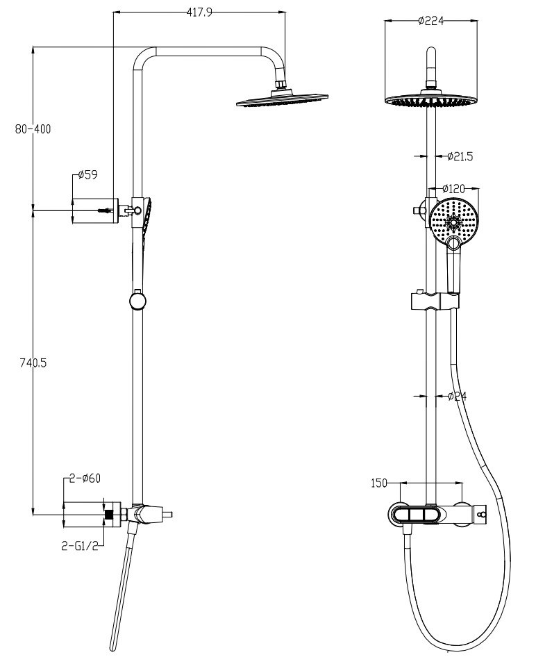 | Длина верхнего душа | 22.4 см |