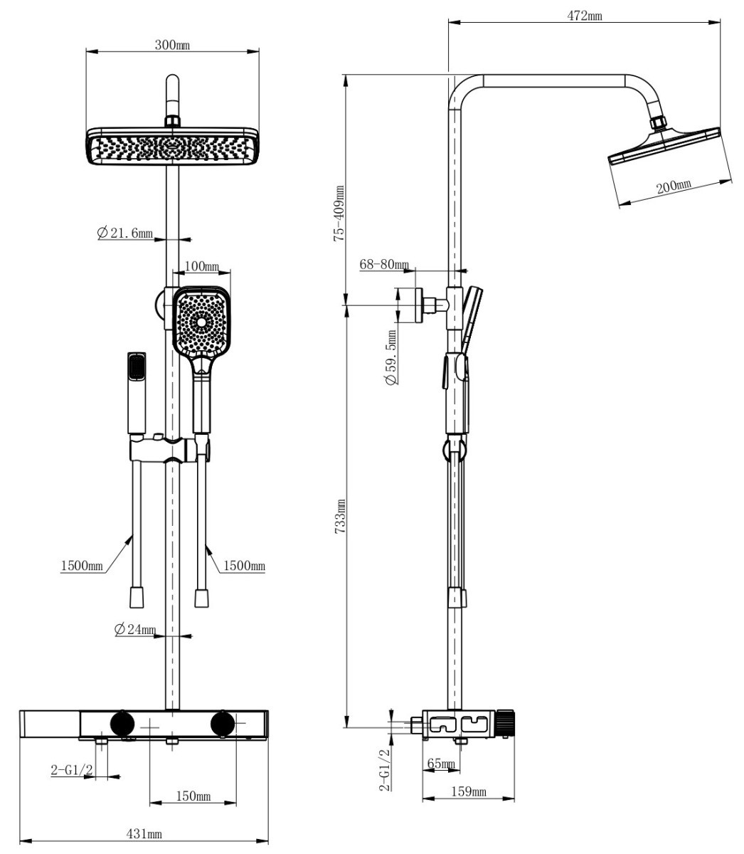 Душевая система Wonzon&Woghand Shelf WW-B4161-MB, черная матовая