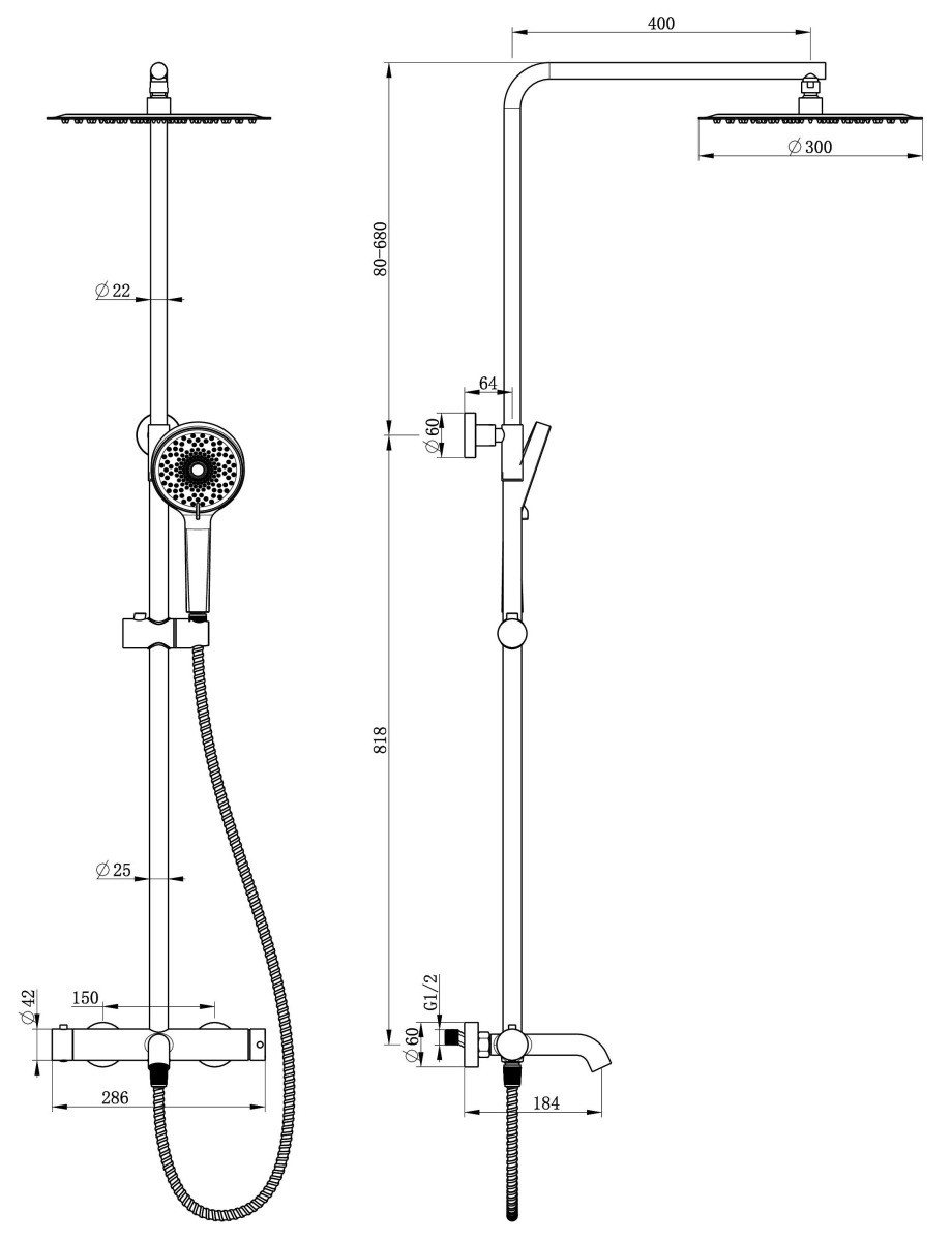 | Длина верхнего душа | 30 см |