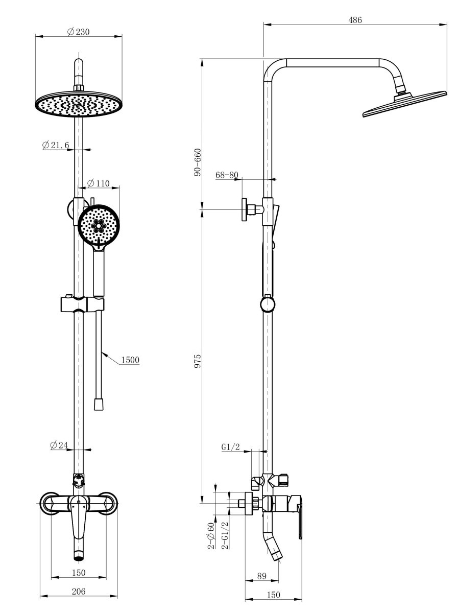 | Вылет верхнего душа | 48.6 см |