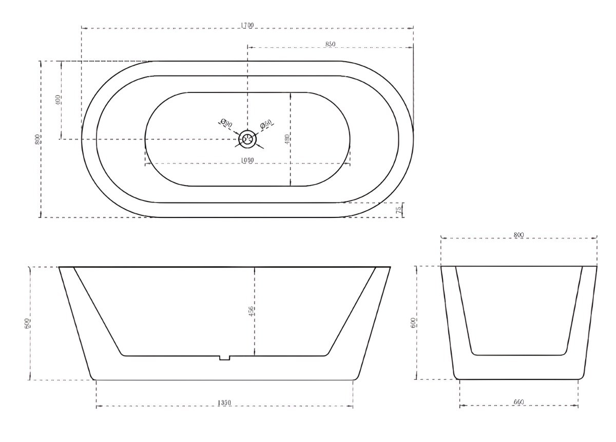 Акриловая ванна Abber AB9345-1.7 170x80, отдельностоящая