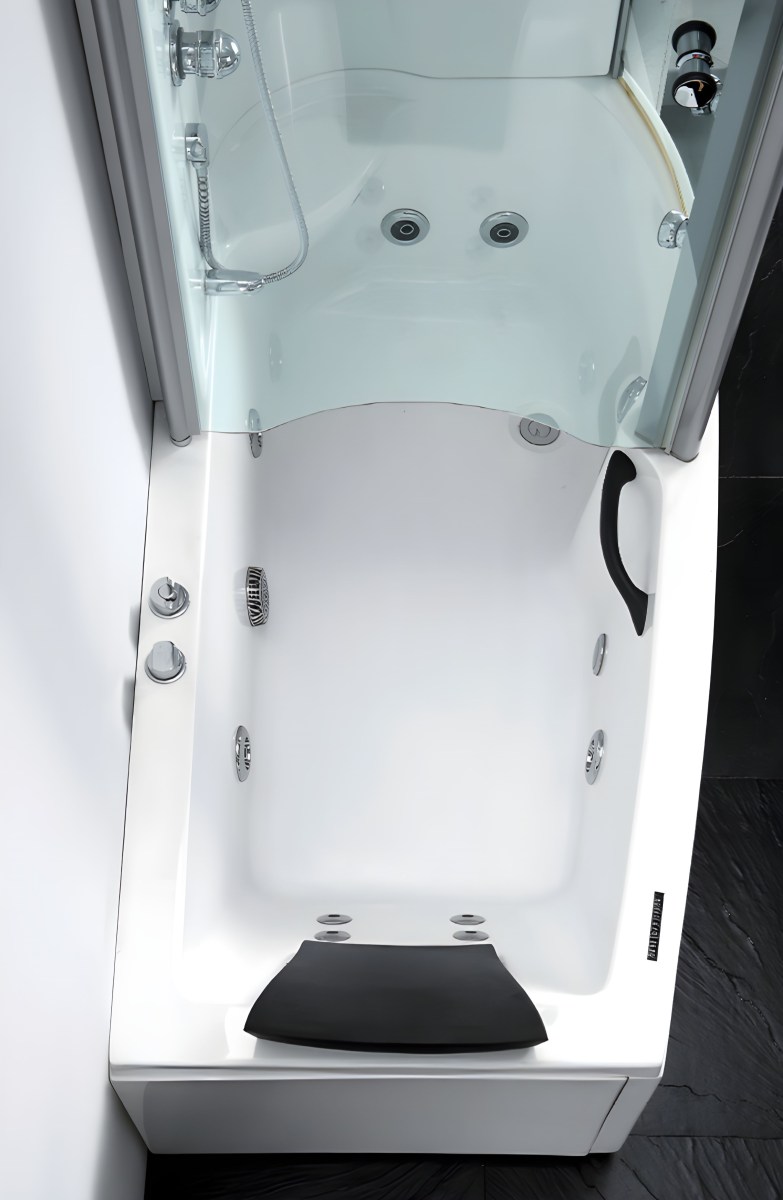 Ванна укомплектована каркасом, сливом-переливом, сифоном, ручками, экраном, подголовником и смесителем. Наличие перелива обеспечивает дополнительную безопасность, предотвращая переполнение ванны. Ручки облегчают процесс подъёма и спуска, особенно для людей с ограниченными физическими возможностями.