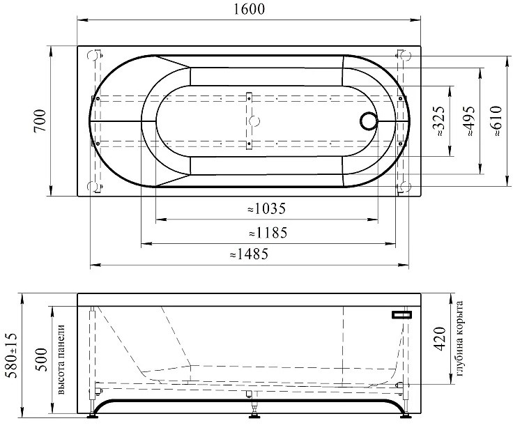 Акриловая ванна Radomir Виктория лайт 160x70 с каркасом