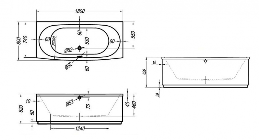В комплект входит: ванна, металлический карскас, сливперелив.