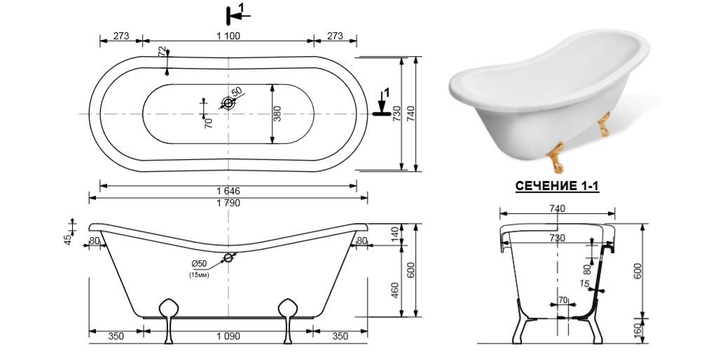 | Монтаж ванны | Отдельностоящий |