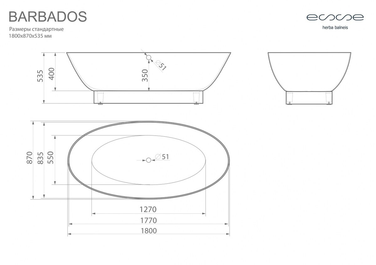 Отдельностоящая ванна Esse «Barbados» это лаконичный дизайн, в котором сочетаются строгие прямые линии с плавными изгибами углов. Наружная часть ванны как и внутренняя покрыта эмалью, благодаря чему ванну не нужно закрывать экраном.
