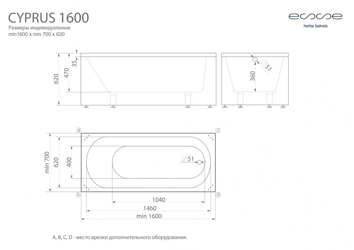 Прямоугольная ванна Esse «Cyprus 160» создана из прямых форм,что обеспечивает не только надежность, но и является более гигиеничной, поскольку нет изгибов в которых могут оставаться загрязнения и собираться микробы.