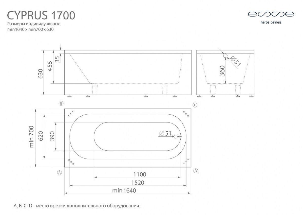 Прямоугольная ванна Esse «Cyprus 170» создана из прямых форм,что обеспечивает не только надежность, но и является более гигиеничной, поскольку нет изгибов в которых могут оставаться загрязнения и собираться микробы.