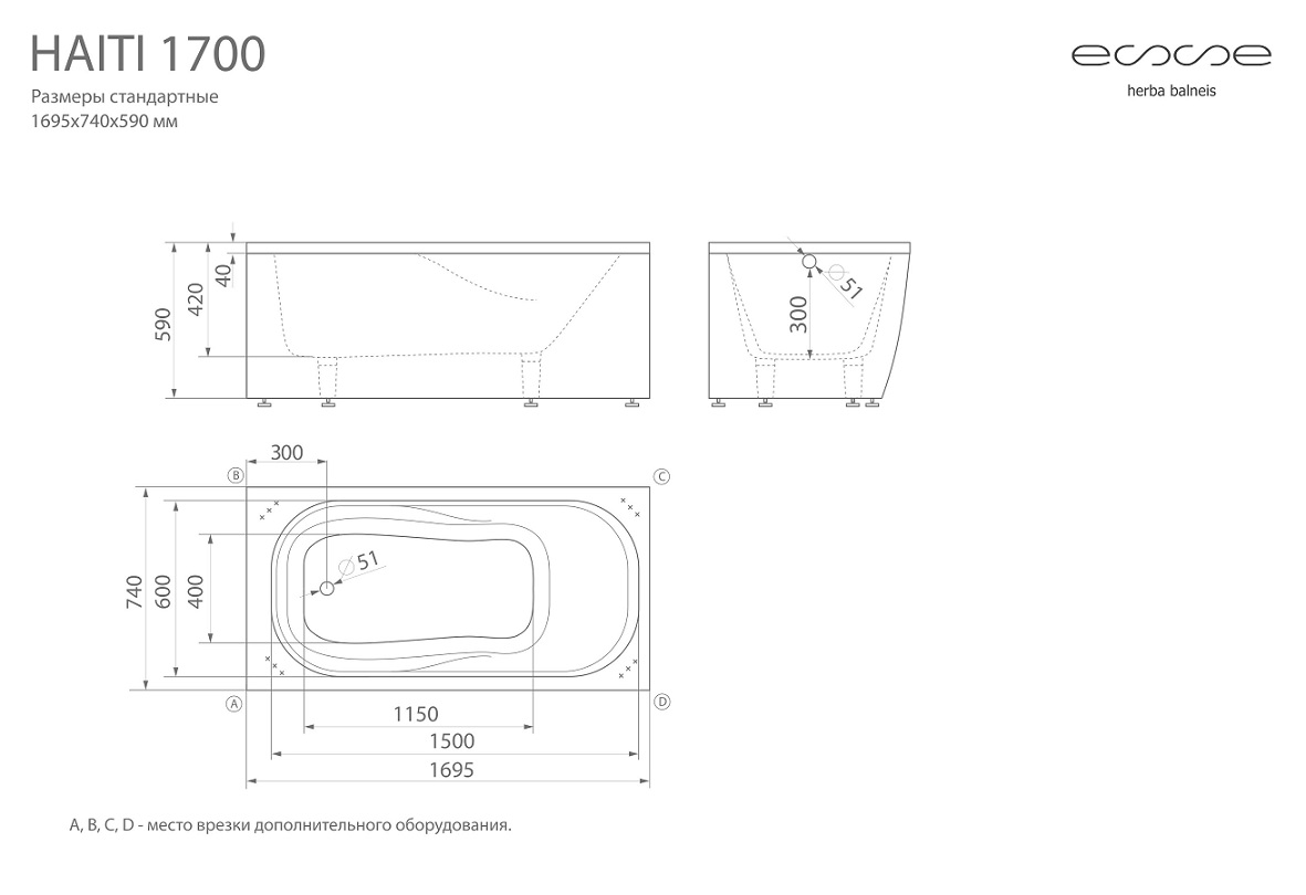 Прямоугольная ванна Esse «Haiti 170» создана из прямых форм,что обеспечивает не только надежность, но и является более гигиеничной, поскольку нет изгибов в которых могут оставаться загрязнения и собираться микробы.