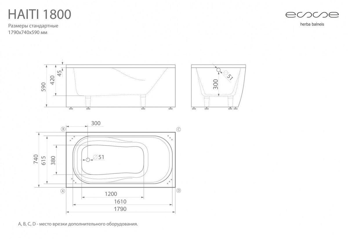 Прямоугольная ванна Esse «Haiti 180» создана из прямых форм,что обеспечивает не только надежность, но и является более гигиеничной, поскольку нет изгибов в которых могут оставаться загрязнения и собираться микробы.