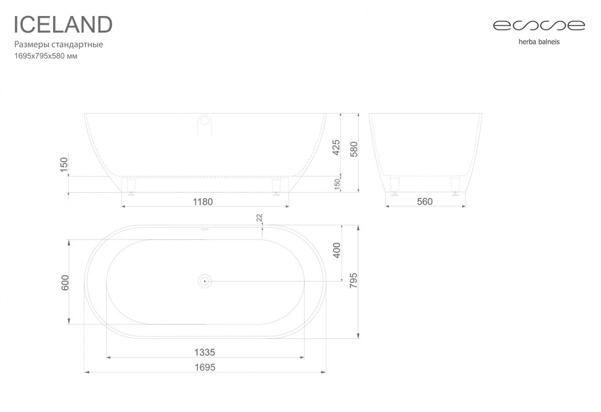 Отдельностоящая ванна Esse «Iceland» это лаконичный дизайн, в котором сочетаются строгие прямые линии с плавными изгибами углов. Наружная часть ванны как и внутренняя покрыта эмалью, благодаря чему ванну не нужно закрывать экраном.