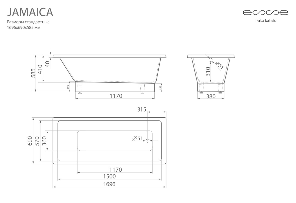 Прямоугольная ванна Esse «Jamaica» создана из прямых форм,что обеспечивает не только надежность, но и является более гигиеничной, поскольку нет изгибов в которых могут оставаться загрязнения и собираться микробы.