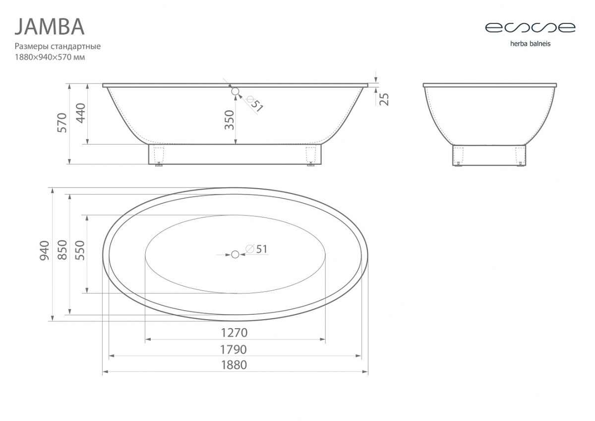 Отдельностоящая ванна Esse «Jamba» это лаконичный дизайн, в котором сочетаются строгие прямые линии с плавными изгибами углов. Наружная часть ванны как и внутренняя покрыта эмалью, благодаря чему ванну не нужно закрывать экраном.