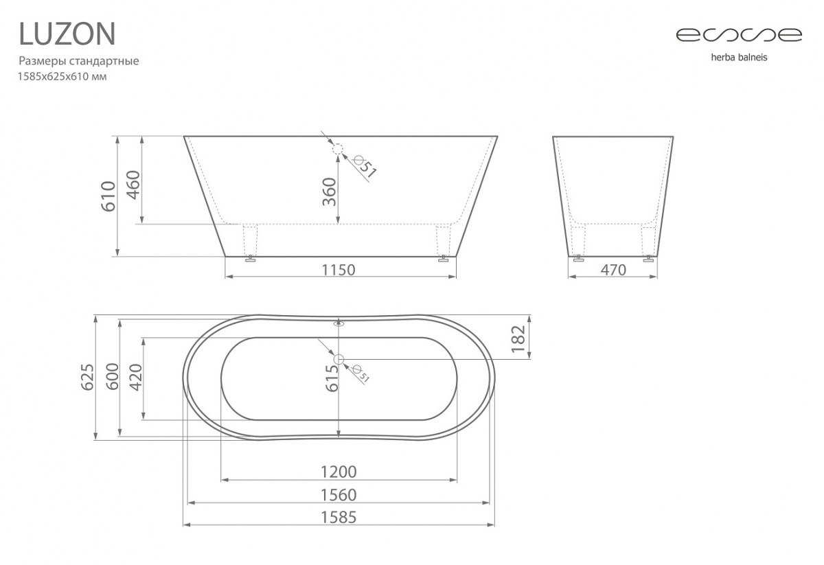 Отдельностоящая ванна Esse «Luzon» это лаконичный дизайн, в котором сочетаются строгие прямые линии с плавными изгибами углов. Наружная часть ванны как и внутренняя покрыта эмалью, благодаря чему ванну не нужно закрывать экраном.