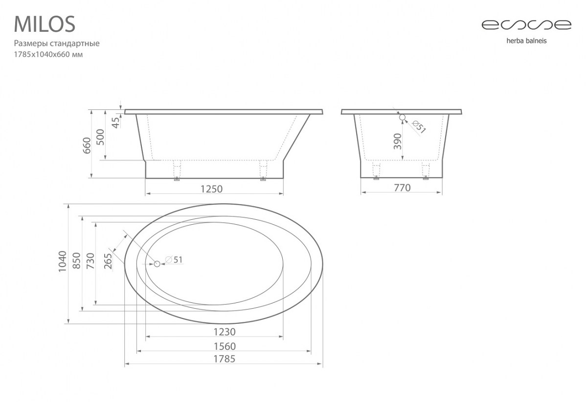Отдельностоящая ванна Esse «Milos» это лаконичный дизайн, в котором сочетаются строгие прямые линии с плавными изгибами углов. Наружная часть ванны как и внутренняя покрыта эмалью, благодаря чему ванну не нужно закрывать экраном.