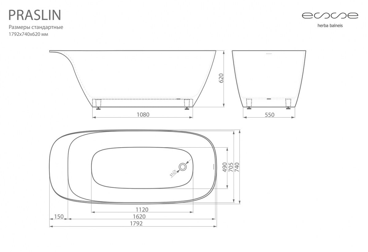 Отдельностоящая ванна Esse «Praslin» это лаконичный дизайн, в котором сочетаются строгие прямые линии с плавными изгибами углов. Наружная часть ванны как и внутренняя покрыта эмалью, благодаря чему ванну не нужно закрывать экраном.