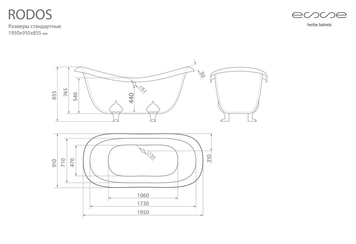 Отдельностоящая ванна Esse «Rodos» это лаконичный дизайн, в котором сочетаются строгие прямые линии с плавными изгибами углов. Наружная часть ванны как и внутренняя покрыта эмалью, благодаря чему ванну не нужно закрывать экраном.