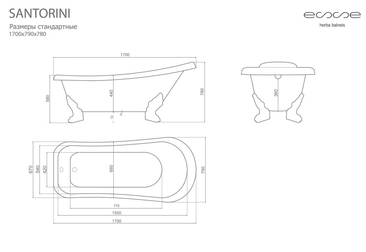 Отдельностоящая ванна Esse «Santorini» это лаконичный дизайн, в котором сочетаются строгие прямые линии с плавными изгибами углов. Наружная часть ванны как и внутренняя покрыта эмалью, благодаря чему ванну не нужно закрывать экраном.