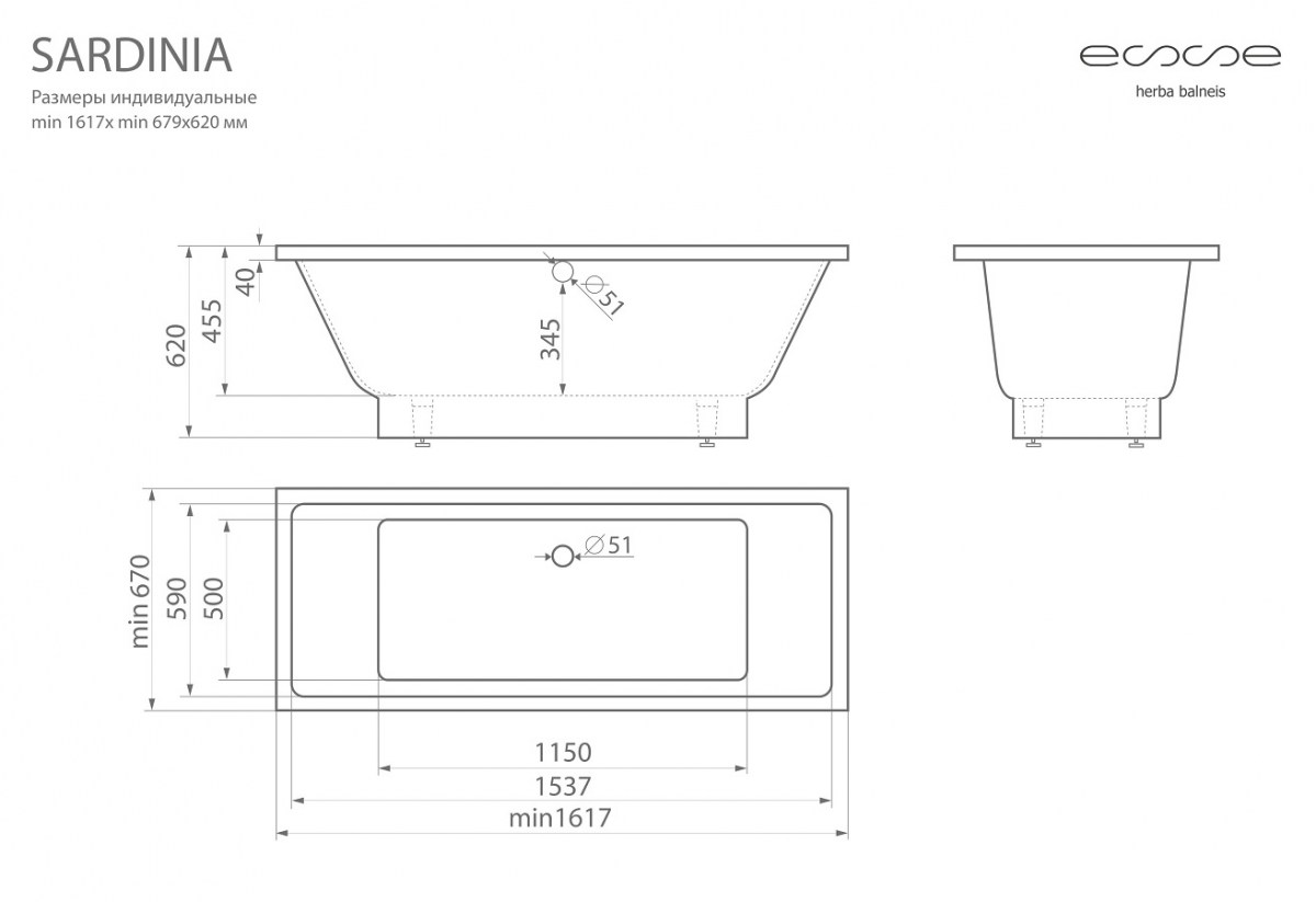 Прямоугольная ванна Esse «Sardinia» создана из прямых форм,что обеспечивает не только надежность, но и является более гигиеничной, поскольку нет изгибов в которых могут оставаться загрязнения и собираться микробы.