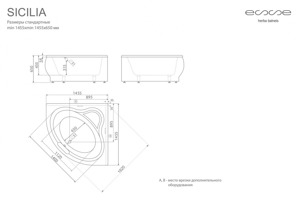 Асимметричная ванна Esse «Sicilia» это сочетание мягких и острых прямых линий, благодаря этому ванна имеет невероятную практичность, в виде объекта дизайна, который идеально впишется как в роскошный классический, так и в аутентичный современный стиль.