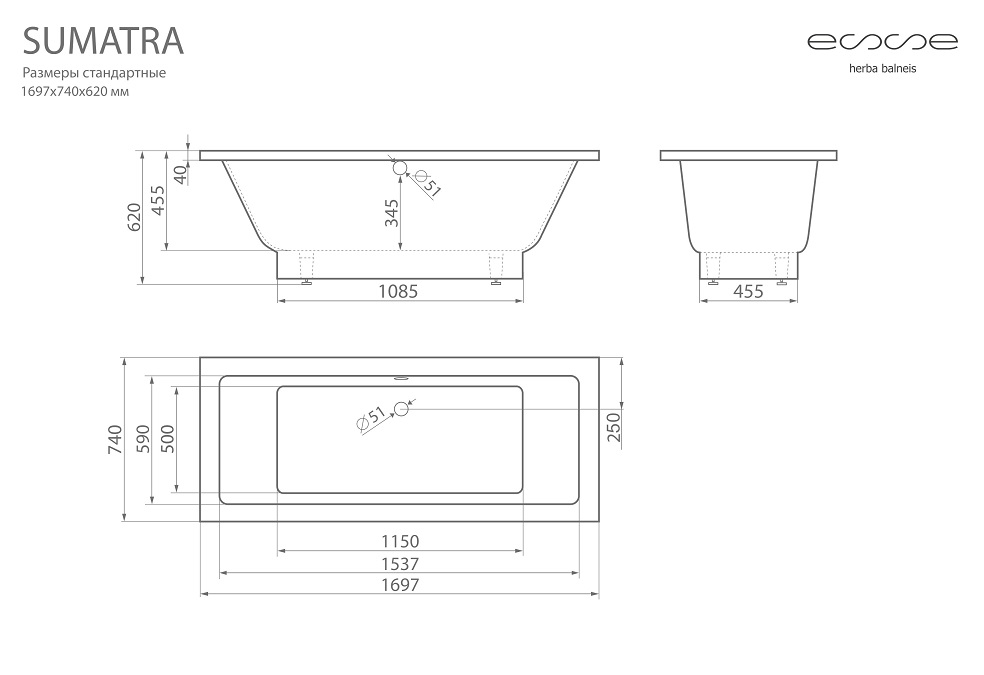 Прямоугольная ванна Esse «Sumatra» создана из прямых форм,что обеспечивает не только надежность, но и является более гигиеничной, поскольку нет изгибов в которых могут оставаться загрязнения и собираться микробы.