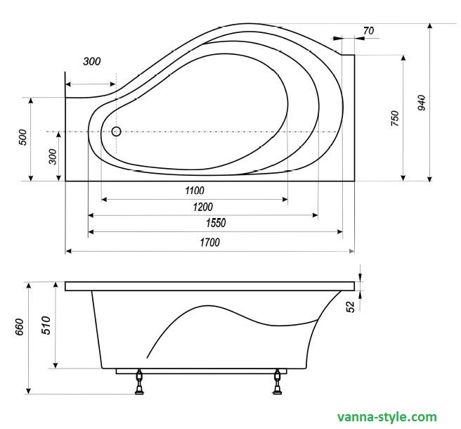 | Форма ванны | Асимметричная |